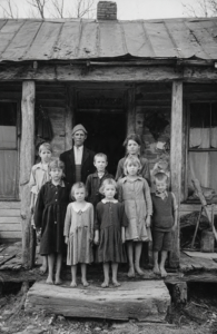 Black and White photo of hillbilly family.