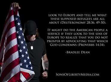 Just look to Europe and tell me what these supposed refugees are all about (Deuteronomy 28:36, 49-50). It might do the American people a service if they look to the sins of Europe to realize that you do not prosper by advocating that which God condemns (Proverbs 14:34).