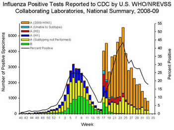 According to data provided by the Centers for Disease Control, for week 34 ending August 29, 2009, there were 236 hospitalizations and 37 deaths related to the flu. That would represent just 5 hospitalizations and less than one death per State, which is “below the epidemic threshold.”