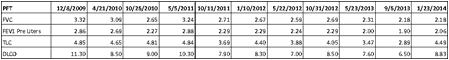 I have been taking these for over 2 years. The table shows a history of my pulmonary function studies (PFTs) from the beginning of my diagnosis at 12/8/2009. The 4 studies used were FVC (Forced Vital Capacity), FEV (Forced Expiratory Volume), TLC (Total Lung Capacity) and DLCO (Diffuse Capacity).The FVC, FEV1 and TLC are measured in liters. The DLCO is measured in ml/mmHg/min.